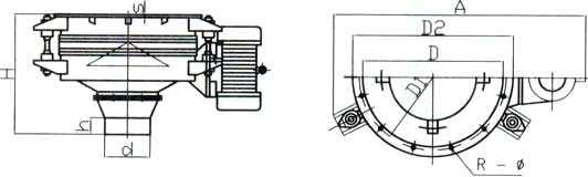 型 號(hào) | D | D1 | D2 | d | A | h | H | δ | n-Φ | 外形尺寸A×D2×H |