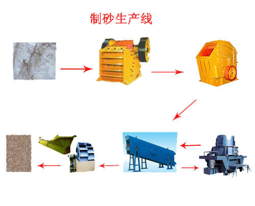 制砂生產(chǎn)線有振動給料機(jī)、顎式破碎機(jī)、制砂機(jī)、振動篩和膠帶傳輸機(jī)等設(shè)備組合而成。根據(jù)不同的工藝要求,各種型號的設(shè)備進(jìn)行組合,滿足客戶的不同工藝要求。